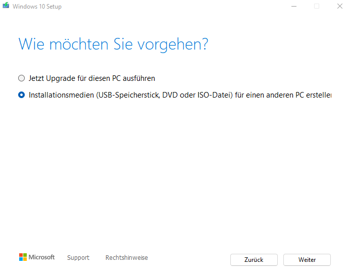 - Wählen Sie Option 2 aus: "Installationsmedien (USB...) für einen anderen Pc erstellen " aus.