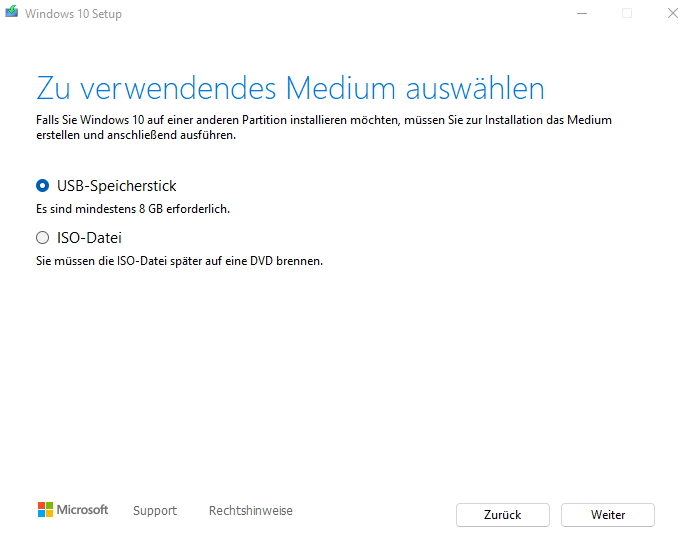 - Wählen Sie erste Option aus: "USB Speicherstick".