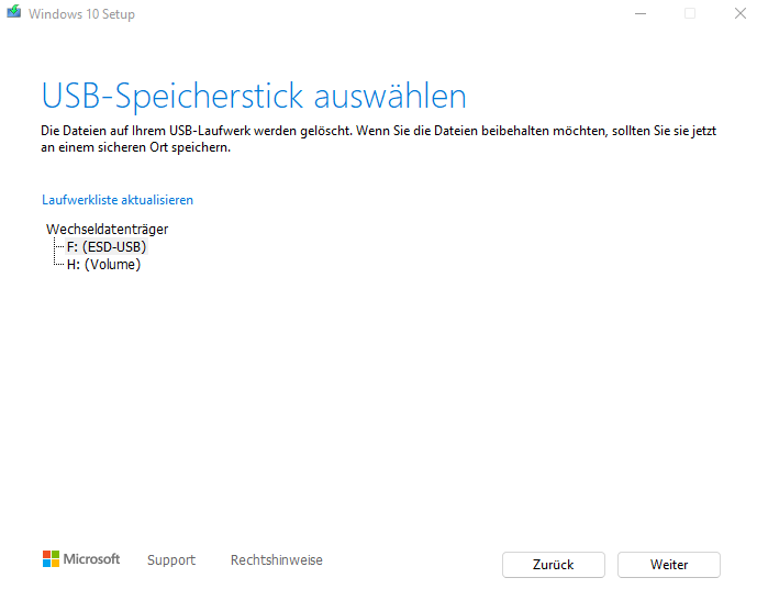- Sichern Sie Ihre Daten vor dem Start der Prozedur, sollten Ihnen diese auf dem USB Stick für wichtig erscheinen.