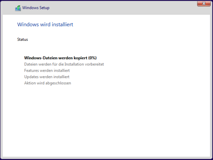 - Warten Sie ab bis Windows die notwendigen Datei kopiert hat.